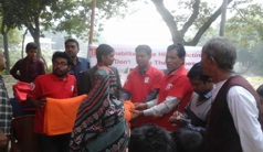 Clothing Distribution of Bogra. REO’s President Bikash Sornokar with District Mayor and Others local People were present of the Program. Date: 25th December 2016.